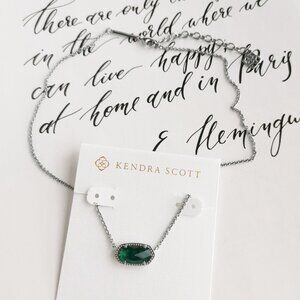 Kendra Scott Elisa Silver Green Cat's Eye Necklace