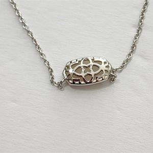 Kendra Scott Elisa necklace in silver with sparkly white Iridescent Opal stone.