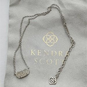 Kendra Scott Elisa necklace in silver with sparkly white Iridescent Drusy stone.