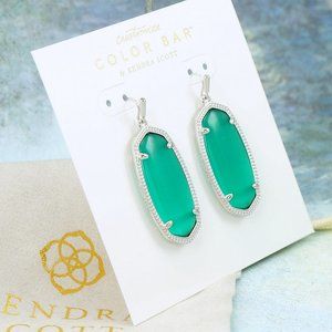 Kendra Scott Elle Cat's Eye Emerald Green Earrings Silver Tone