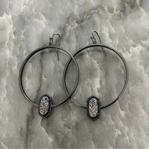 Kendra Scott Elora Gunmetal Hoop Platinum Drusy Earrings