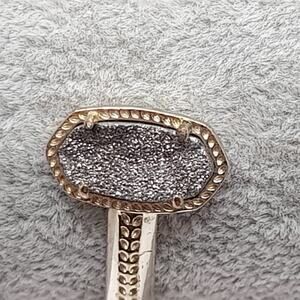 *Description: This is a Kendra Scott Elton Cuff Bracelet featuring platinum drusy stones set in a gold-toned metal. The bracelet has an open cuff design with an oval-shaped drusy stone at each end. Drusy is a term for the natural crystallization on a rock surface. Kendra Scott uses genuine drusy in its jewelry, which gives it a sparkling appearance. The bracelet in the image is likely the Elton style, known for its mixed material design and bezel-set stones.