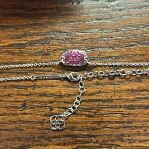 Chic with a bold fuchsia stone. Silver chain adds elegance. Ideal for any occasion.