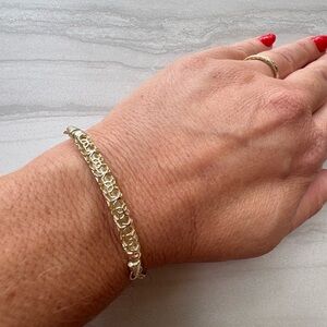 Elegant gold bracelet with intricate design. Features a delicate chain and secure clasp.