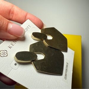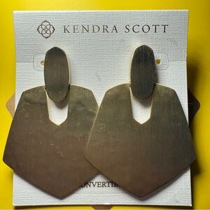 Kendra Scott Finch statement earrings in hammered gold. These are a true yellow gold. Good used condition, showing medium amounts of wear including some discoloration on the sides. Please review photos. This style is discontinued and no longer sold in stores!