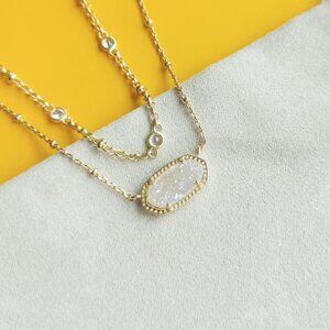 Layering is easier than ever with our Elisa Gold Multi Strand Necklace in Iridescent Drusy, featuring an iconic KS pendant pre-styled with a thoughtfully designed double chain.