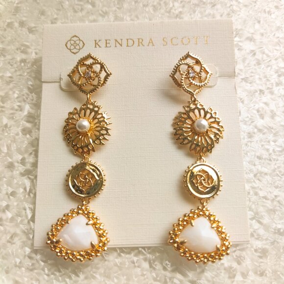 Kendra Scott Gold Ivory Mother-of-Pearl Brielle Linear Drop Earrings NEW w/dust