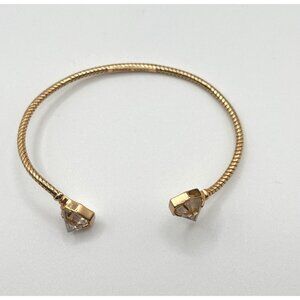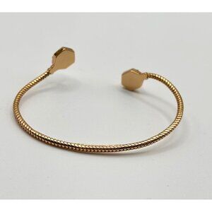 This elegant bracelet by Kendra Scott features a gold-tone finish and hexagonal crystal accents on each end, offering a sophisticated touch to any wardrobe. A versatile piece that enhances both casual and formal attire with its sleek design and quality craftsmanship.