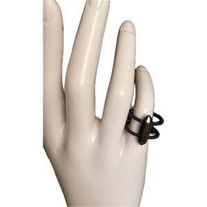 ITEM: Kendra Scott Gunmetal Plated Brass Matching Crystal Accent Oval & Open Design Abra Ring-Size 6