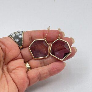 Kendra Scott Hexagon Rose Quartz Drop Earrings Gold Plated Dangle Hook
