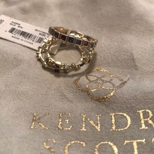 Elegant stackable rings by Kendra Scott. Features gold and multi stone. Perfect for any occasion. Like new.