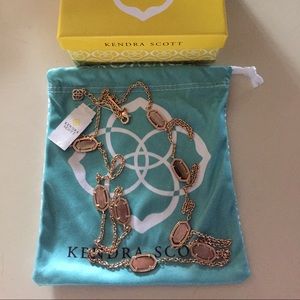 Rose Gold Chain with Brown mother of Pearl. 14 k gold plated over brass. Measures: stones 0.63" L x 0.38"w chain is 40" l with a 2" extender. Dust bag included.