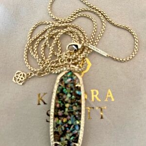 Kendra Scott Layden Necklace Crushed Abalone Shell Long Goldtone Chain NEW