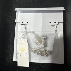 Kendra Scott Letter "X" Disc Pendant Necklace Rhodium Black Mother-Of-Pearl