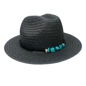 Kendra Scott Lincoln Cattleman Straw Stone Hat - Black / Turquoise
