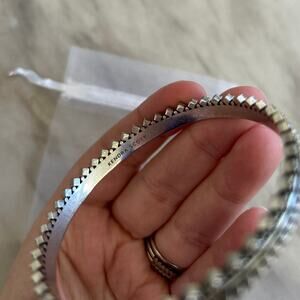 Excellent condition. Grey toned silver. Textured mosaic style with crystal embellishment. Pull on. Kendra Scott mark on inner band.