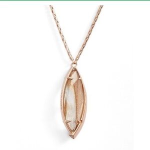 Kendra Scott Milla Mother of Pearl Gold Thick Slide Necklace. Very unique and stylish piece to add to your collection. Length of chain is 32". Overall pendant size is 2.5" x 7/8" including bail. Type of chain. Gold toned. Comes with jewelry dust bag. Item in good condition. It does show some wear. See photos. No known defects.