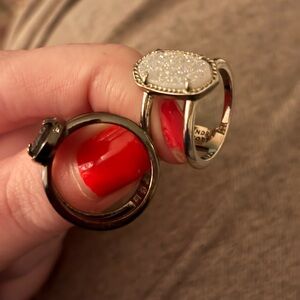 Chic Kendra Scott rings with black and iridescent white stones. Ideal for any occasion. This listing is for BOTH rings, but can be bought separately upon request. just message me first! the rings are a size 7 but would fit best on a size 6.
