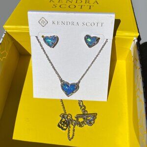 Kendra Scott *NEW Ari Heart Kyocera Opal Ocean Blue Silver SET Necklace Earrings