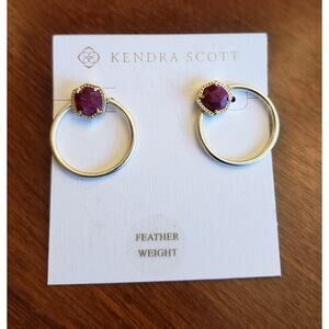 Kendra Scott NWT Feather weight Davie Hoop Earrings Raspberry stone gold hoop