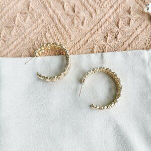 Organic, rattan texture dipped in a modern-day metallic, the Natalie Hoop Earrings in Gold are a contemporary take on a vintage-inspired design. No matter how you wear them, you'll make a boldly boho statement in a truly timeless trend.