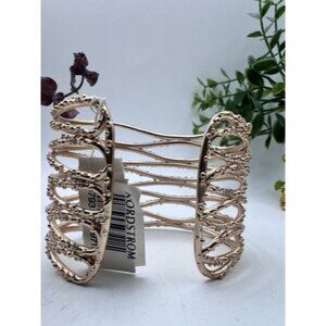 Beautiful Kendra Scott Nicolas Cuff Bracelet. The round, chunky bracelet features a stunning combination of rhinestone and crystal materials that sparkle and shine in the light. The yellow gold plated metal adds a touch of luxury and sophistication to the piece.