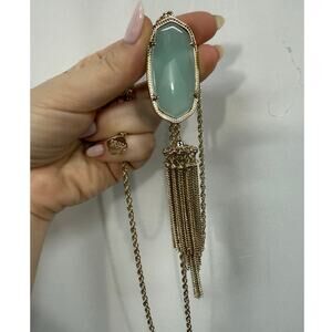 Kendra Scott Rayne Gold Long Pendant Necklace Green Sea Moss Stone