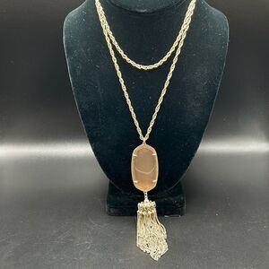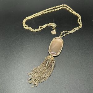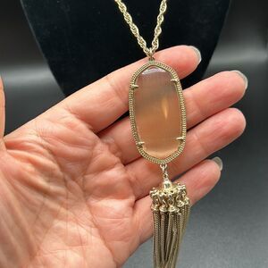 Kendra Scott Rayne Light Peach Stone Gold Tassel Necklace