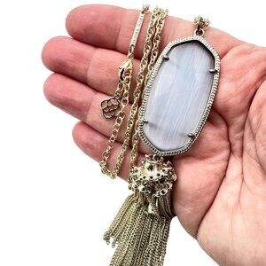 Kendra Scott Rayne Necklace Gold Tone Grey Slate Cats Eye Tassle Pendant