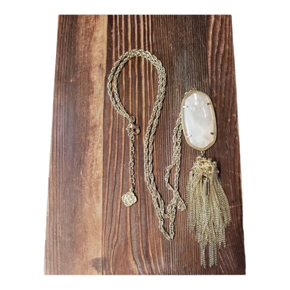 Kendra Scott Rayne Rose Gold Long Pendant Necklace in Ivory MotherofPearl.