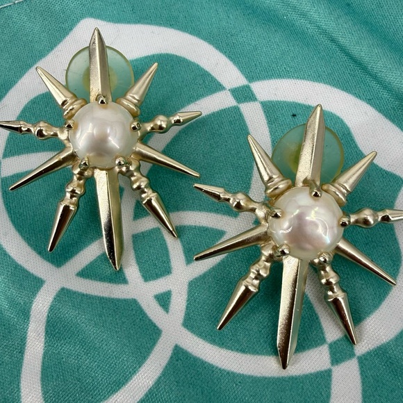 Kendra Scott Rogan Starburst Pearl Gold Statement Stud Earrings with Dust Bag
