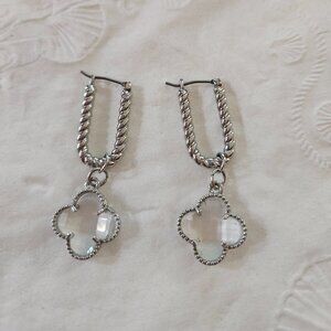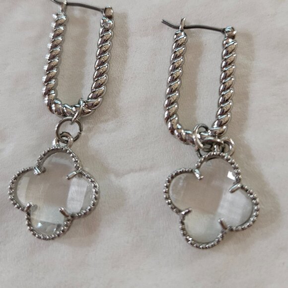 The earrings are 1.5"s approximately in length and .5"s in width. The earrings are made of silver and quartz crystal.