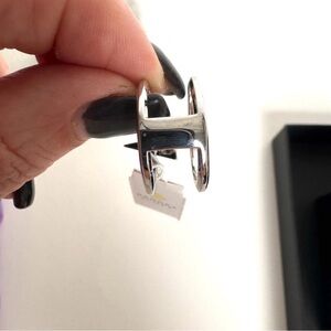 Bold silver ring with a geometric design. Ideal for a modern look.