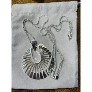 The Kendra Scott Silver Long Deanne Necklace is a stylish statement piece made of silver. This necklace features a chain with a pendant design, making it a versatile and eye-catching accessory for any outfit. The brand Kendra Scott is known for its high-quality and unique pieces, making this necklace a timeless addition to any jewelry collection.