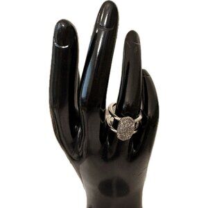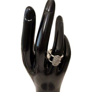 Kendra Scott Silver Rodium Plated Platinum Drusy Oval & Open Elyse Ring-Size-6