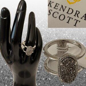 ITEM: Kendra Scott Silver Rodium Plated Over Brass Platinum Drusy Oval & Open Design Elyse Ring-Sz-6 The Elyse Silver Ring in Platinum Drusy is the definition of a wear-anywhere statement. Loved for its unique details, this ring features our signature oval shape and an open design. Add the finishing touch to any look with the Elyse Silver Ring.
