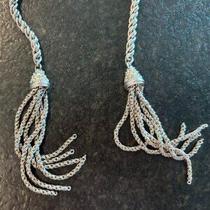 Kendra Scott Silver Rope Lariat Necklace Tassel Adjustable Elegant Statement