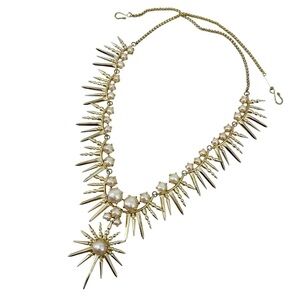 Kendra Scott Valentina Pearl Starburst Gold Statement Necklace Hook Closure