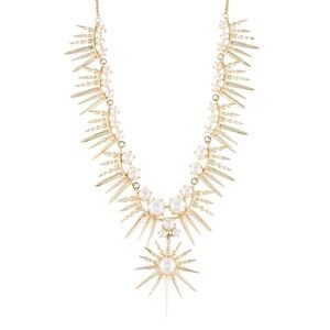 Kendra Scott necklace, Valentina collar, pearl statement necklace, gold spike necklace, starburst jewelry, celestial necklace, baroque pearl necklace, designer statement jewelry, bridal necklace, luxury accessories