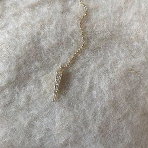 14k gold plated brass necklace. Cubic zirconia accents. Lobster clasp closure. Measures approx 23" in length.Drop chain measures approx 7.5" dangling.