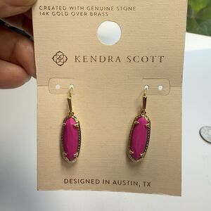 This coordinating jewelry set by designer Kendra Scott comes with the Eva drop dangle earrings and the Eva drop pendant necklace. Both are set in 14 K gold over brass and has pink genuine stones. Earrings and Necklace are brand new on original card. Retail cost for both is $84. Comes from a smoke free home.