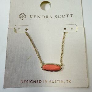 This coordinating jewelry set by designer Kendra Scott comes with the Eva drop dangle earrings and the Eva bar necklace. Both are set in 14 K gold over brass and has Coral Magnesite stones. Both are brand new on original card and retailed for $78. Comes from a smoke free home.