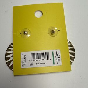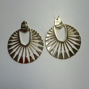 Step into the spotlight wearing the Hattie statement earrings. Featuring bold linear motifs and a front facing hoop design, the statement style will put you front and center right where you belong. In a beautiful shiny 14 K gold over brass finish. Comes brand new on original card. Comes for a smoke free home. Retail cost $58