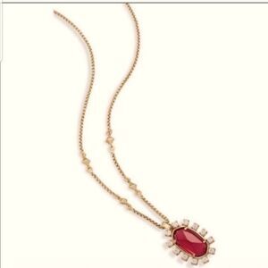 Elegant Kendra Scott necklace featuring a striking red stone set in a gold chain. Perfect for adding a touch of sophistication to any outfit.