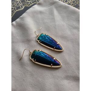 Kendra Scott VVGUC "Skylar" style arrowhead earrings with black iridescent glass stones in 14k gold-plated brass frames with earwire hooks.