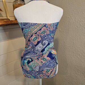 Bright Paisley TWO PIECE w/smocked bust & halter w/adjustable strap & removable cups. Fold over bottom waist makes a comfortable fit and flattering tummy coferate. FROM MACY's. Kenneth Cole