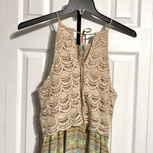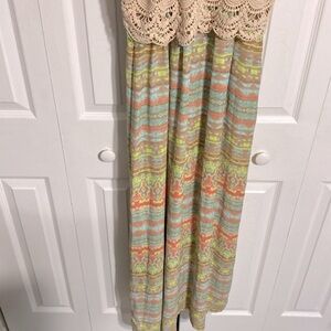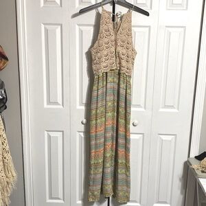Kenji Crochet Boho Beach bohemian long Maxi Dress Blue Pink Yellow Size 12