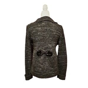 Kenji Peplum Cardigan Classic Feminine Gray Heather Button Tab Sweater Womens L