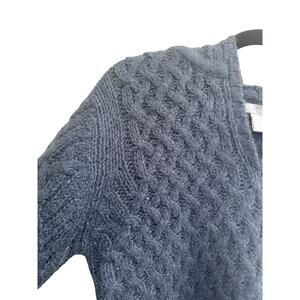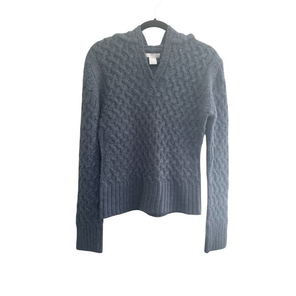 Kenji Womens Medium Blue Wool Alpaca Blend Hooded Cable Knit Sweater #5746