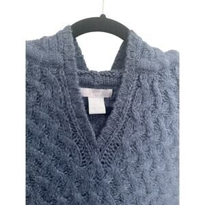 Kenji Womens Medium - Blue Wool Alpaca Acrylic Polyeter Blend - Hooded Cable Knit Sweater - very good used condition - see pics for measurements. Beautiful item!